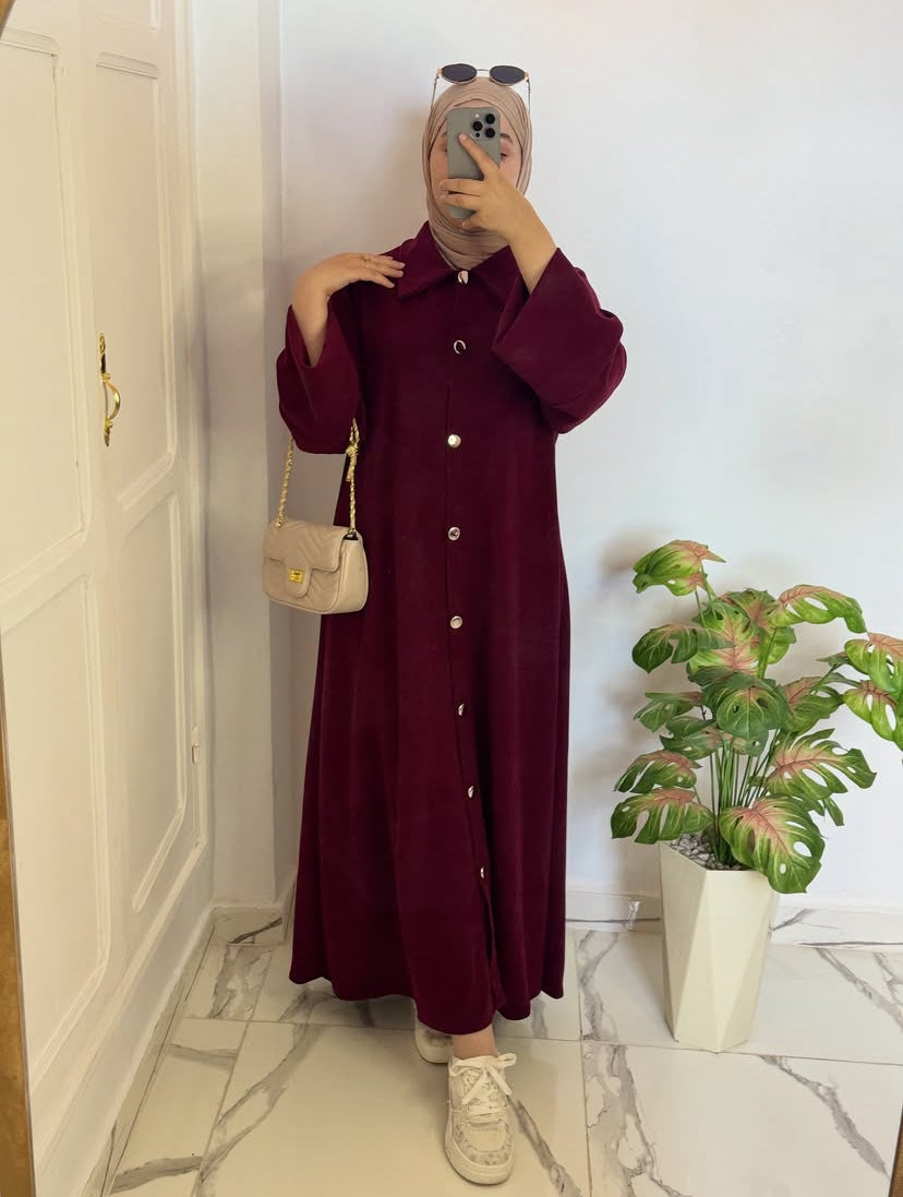 🌹 روب شوميز أنيق بلون بورغوندي فخم