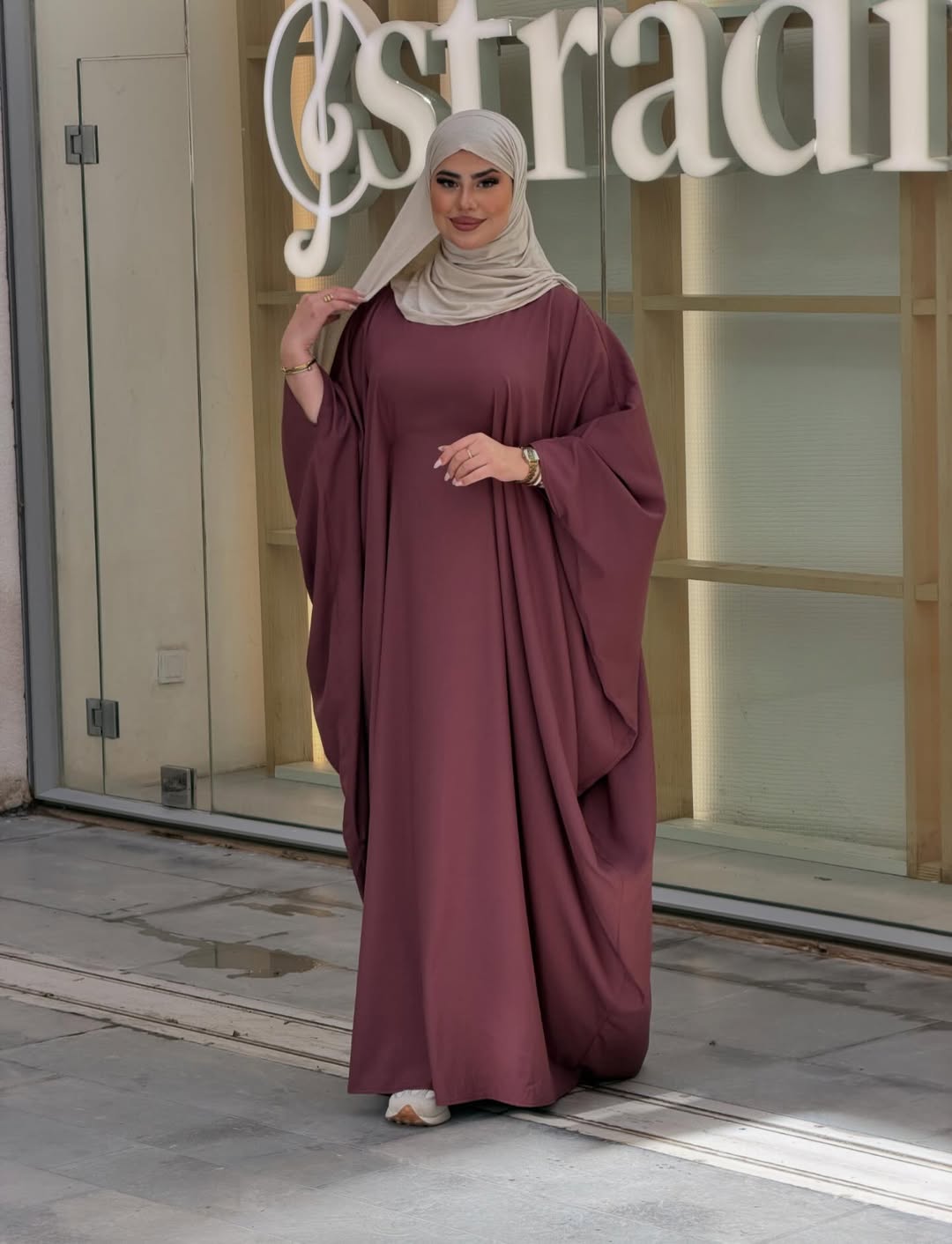 عباية بتصميم فراشة واسع وانسيابي، كيعطيك حركة خفيفة وأنوثة راقية فكل خطوة 🦋